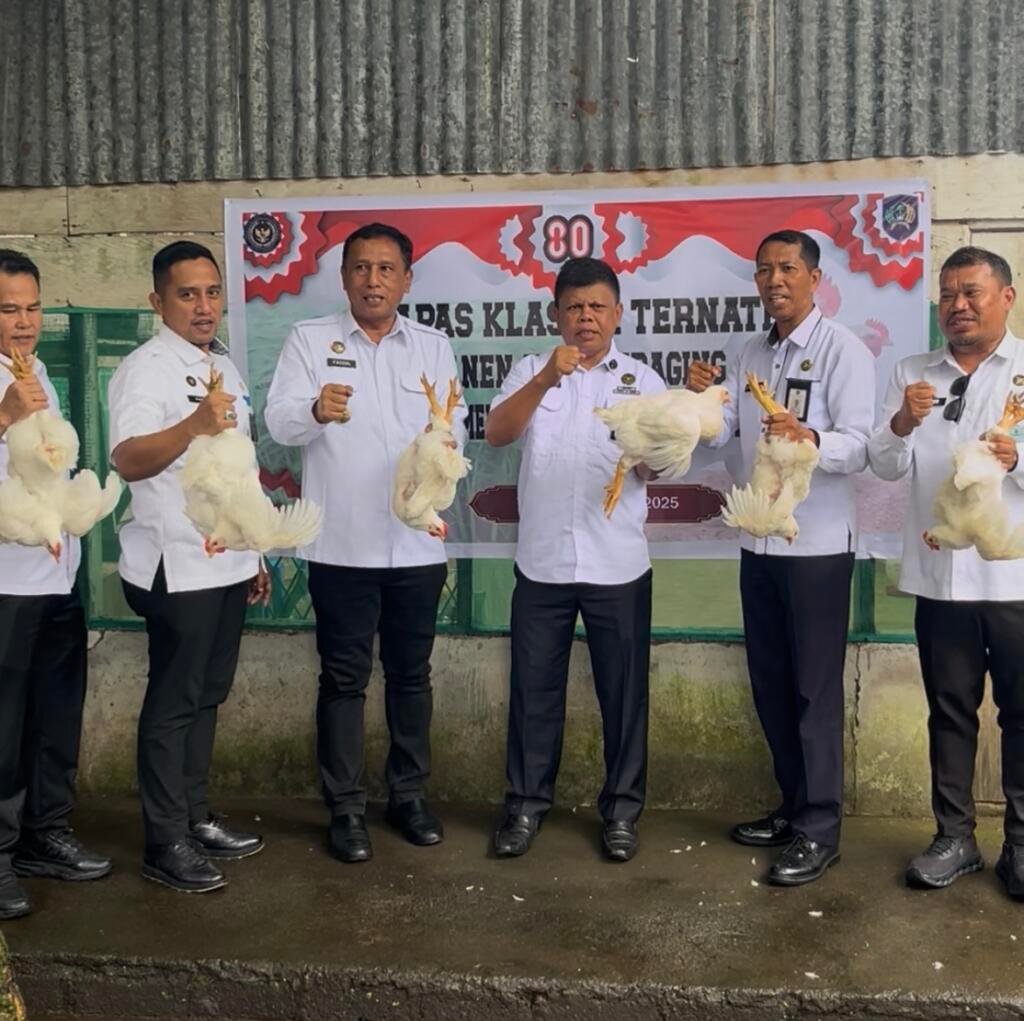 Ternate – Kepala Kantor Wilayah Direktorat Jenderal Pemasyarakatan Maluku Utara, S. Mahdar, memanen 100 ekor ayam pedaging hasil Program Ketahanan Pangan dan Pembinaan Kemandirian di Lapas Kelas IIA Ternate, Rabu (20/8).