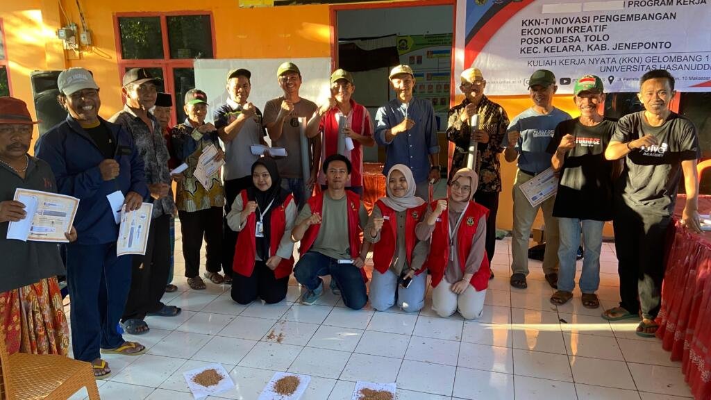 Jeneponto, Sulawesi Selatan – Mahasiswa Kuliah Kerja Nyata (KKN) Universitas Hasanuddin posko Kelurahan Tolo berhasil menyelenggarakan sosialisasi Pemanfaatan Pipa Paralon Menjadi Alat Pemupuk Jagung Semi-Otomatis sederhana di Kelurahan Tolo pada 25 Juli 2025. Kegiatan ini tidak hanya menjelaskan teori tetapi juga melibatkan peserta secara langsung dalam proses pembuatan alat, para peserta yang hadir diajak untuk membuat ajar pemupuk jagung secara langsung. Kegiatan ini dihadiri oleh kepala lingkungan se-Kelurahan Tolo dan para petani setempat.