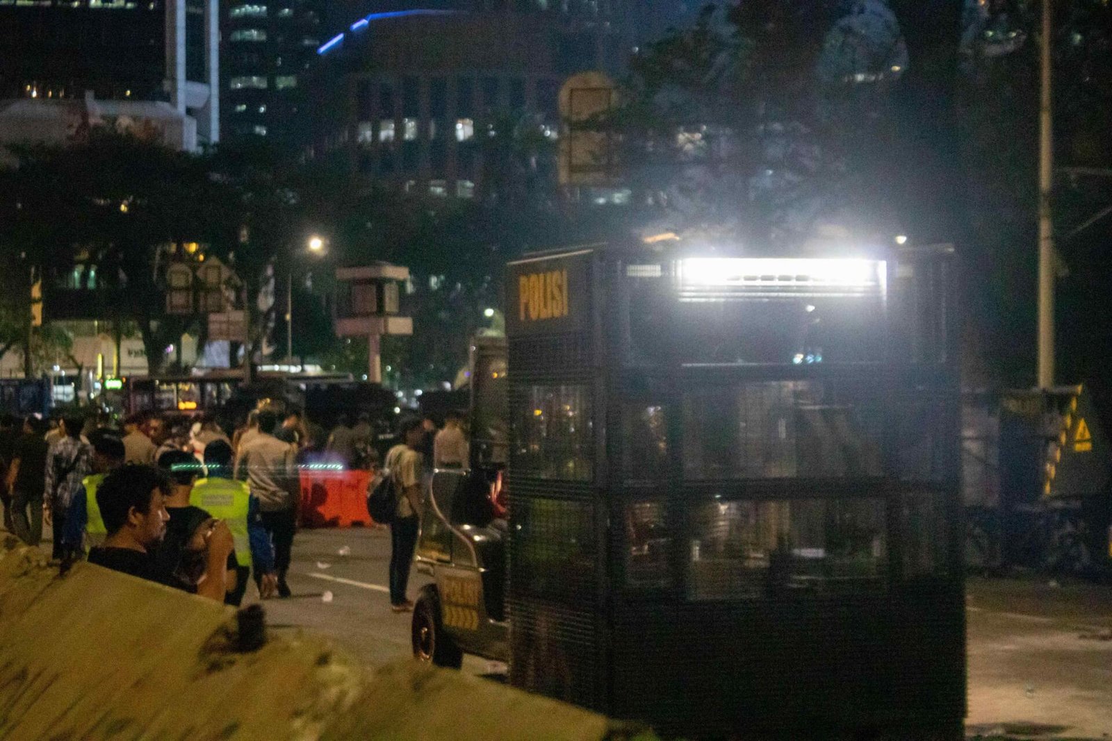 “Kami hadir di sini bukan untuk membuat keributan, tapi mengingatkan bahwa setelah satu tahun, kami tidak melihat perubahan signifikan terhadap kesejahteraan masyarakat.” ujar salah satu suara dari mahasiswa nasional melalui pengeras suara. Kondisi sempat tegang waktu barisan aparat kepolisian menambah penjagaaan, dari foto yang berhasil di ambil tim pers tampak mobil tahanan polisi bersiaga didepan barikade. puluhan personil brimob berjaga di sekitar area aksi guna mencegah kemungkinan kericuhan terjadi.