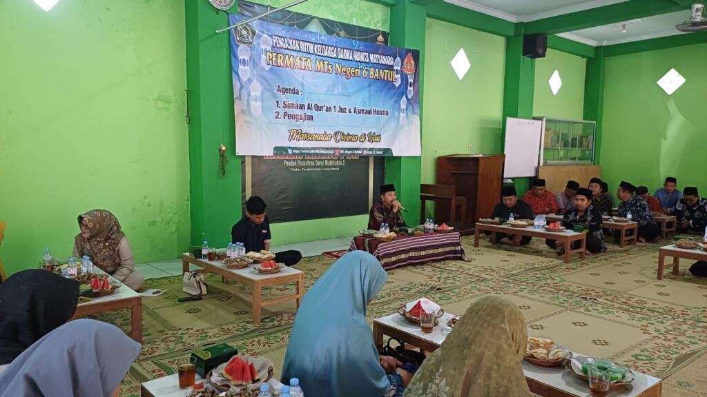 Bantul (MTsN 6 Bantul) — Dalam rangka mempererat ukhuwah islamiyah dan memperkuat nilai-nilai spiritual, Dharma Wanita Persatuan MTsN 6 Bantul menggelar kegiatan pengajian rutin keluarga Dharma Wanita Matsanaba (Permata) pada Sabtu, 16 Agustus 2025, bertempat di Pondok Pesantren Darul Mukhlisin 3, Pulutan, Pendowoharjo, Sewon, Bantul. Acara ini dihadiri oleh para guru, pegawai, beserta keluarga besar MTsN 6 Bantul.