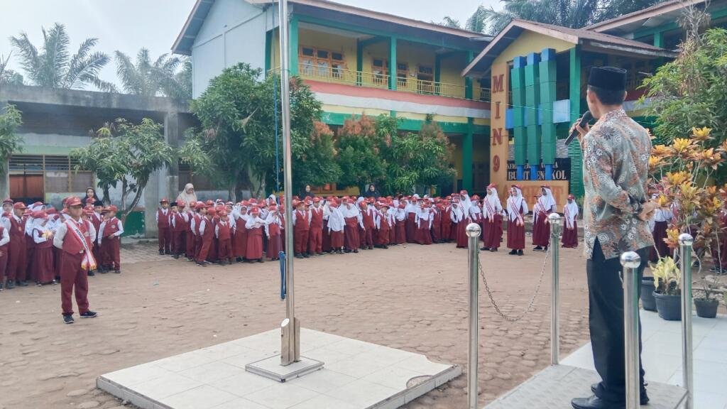 Langkat (Humas) – Hari ini, Senin (01/09/2025) seluruh civitas akademika MIN 9 Langkat kembali mengikuti kegiatan rutinitas upacara bendera di halaman utama Madrasah. Petugas upacara pada hari ini adalah giliran siswa-siswi kelas 5B. Sedangkan yang menjadi pembina upacara adalah Kepala MIN 9 Langkat, Sopian, S. Pd. I., M. Sos.