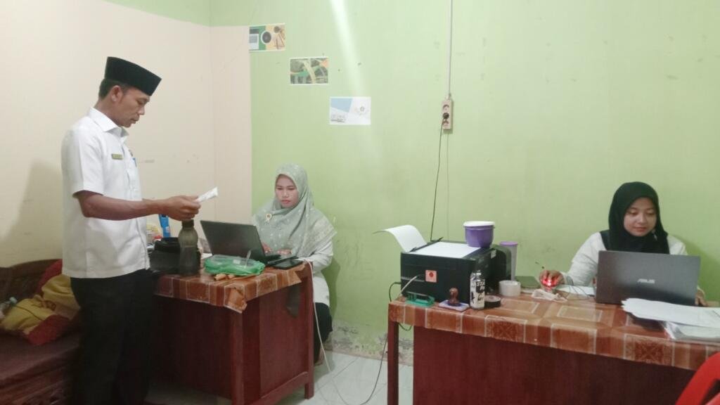 Langkat (Humas) – Bertempat di ruang tata usaha, Kepala MIN 9 Langkat Sopian, S. Pd. I. M. Sos., laksanakan supervisi tenaga administrasi MIN 9 Langkat. Supervisi ditujukan untuk Staf Tata Usaha dan Operator Keuangan MIN 9 Langkat, Selasa (19/08/2025).