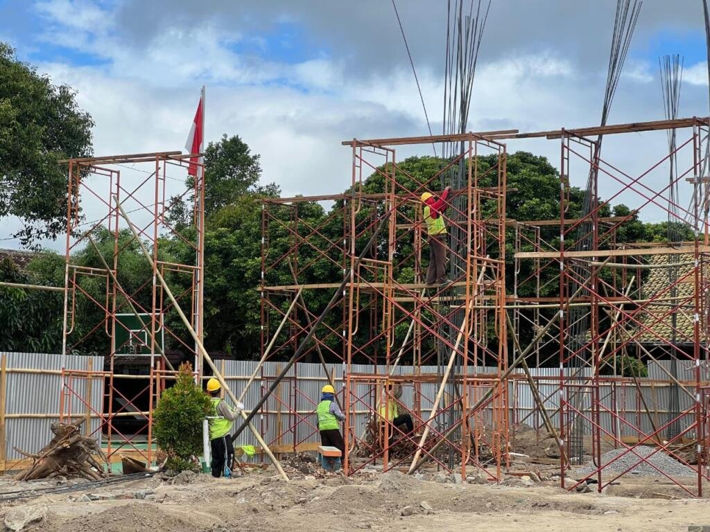 Pemandangan ini menunjukkan komitmen kuat dari pihak kontraktor dan para pekerja untuk memprioritaskan keselamatan sebagai bagian tak terpisahkan dari proses pembangunan. Di tengah tumpukan material dan kerangka besi yang menjulang, penggunaan APD menjadi standar yang wajib dipatuhi. Hal ini penting untuk menciptakan lingkungan kerja yang aman dan mengurangi potensi bahaya yang mungkin terjadi. Dengan demikian, proyek pembangunan gedung baru MTsN 6 Bantul dapat berjalan lancar, efisien, dan yang terpenting, menjamin keselamatan seluruh pekerjanya. (dna/rin)