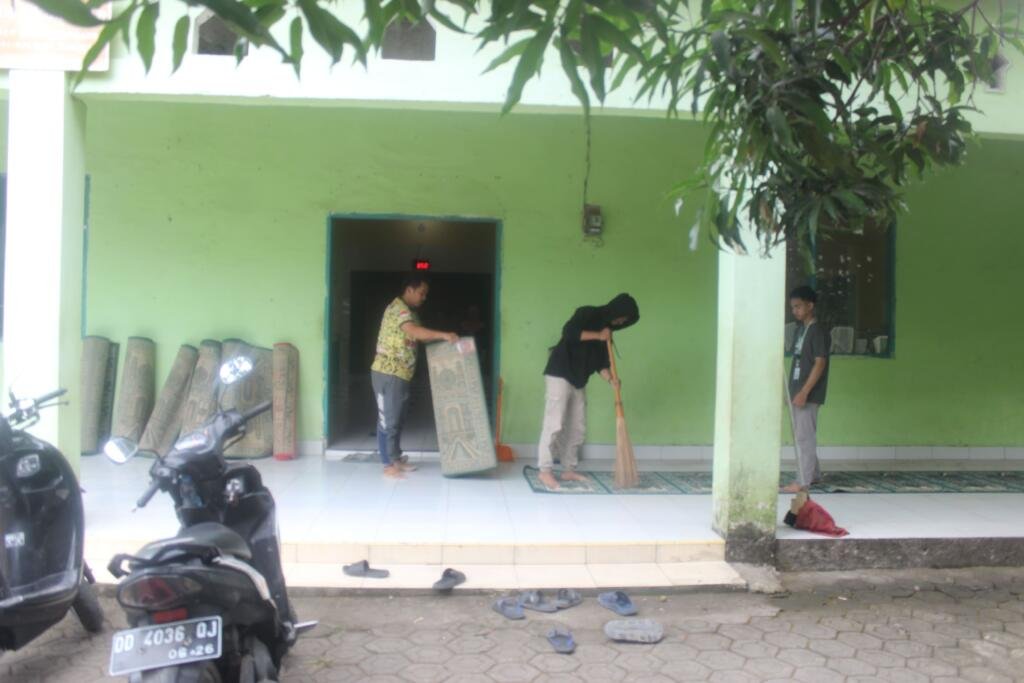 Kerja bakti selanjutnya dilakukan di Masjid Dusun Madallo, Desa Tarowang, mulai pukul 08.00–10.00 WITA. Kegiatan ini melibatkan masyarakat setempat yang antusias bergabung untuk membersihkan area masjid. Kolaborasi antara mahasiswa KKN dan warga Madallo menunjukkan kekompakan dalam menjaga kebersihan rumah ibadah sebagai sarana penting untuk beribadah dan berkumpul.