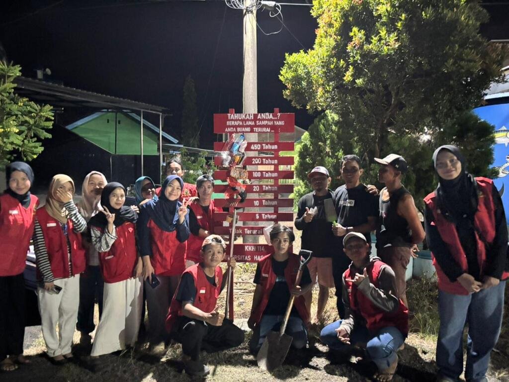 Mahasiswa Kuliah Kerja Nyata (KKN) Universitas Hasanuddin Gelombang 114 yang ditempatkan di Desa Panaikang, Kecamatan Sinjai Timur, Kabupaten Sinjai, melaksanakan program kerja pembuatan dan pemasangan plang edukasi mengenai jenis-jenis sampah dan waktu terurainya di Dusun Baringeng.
