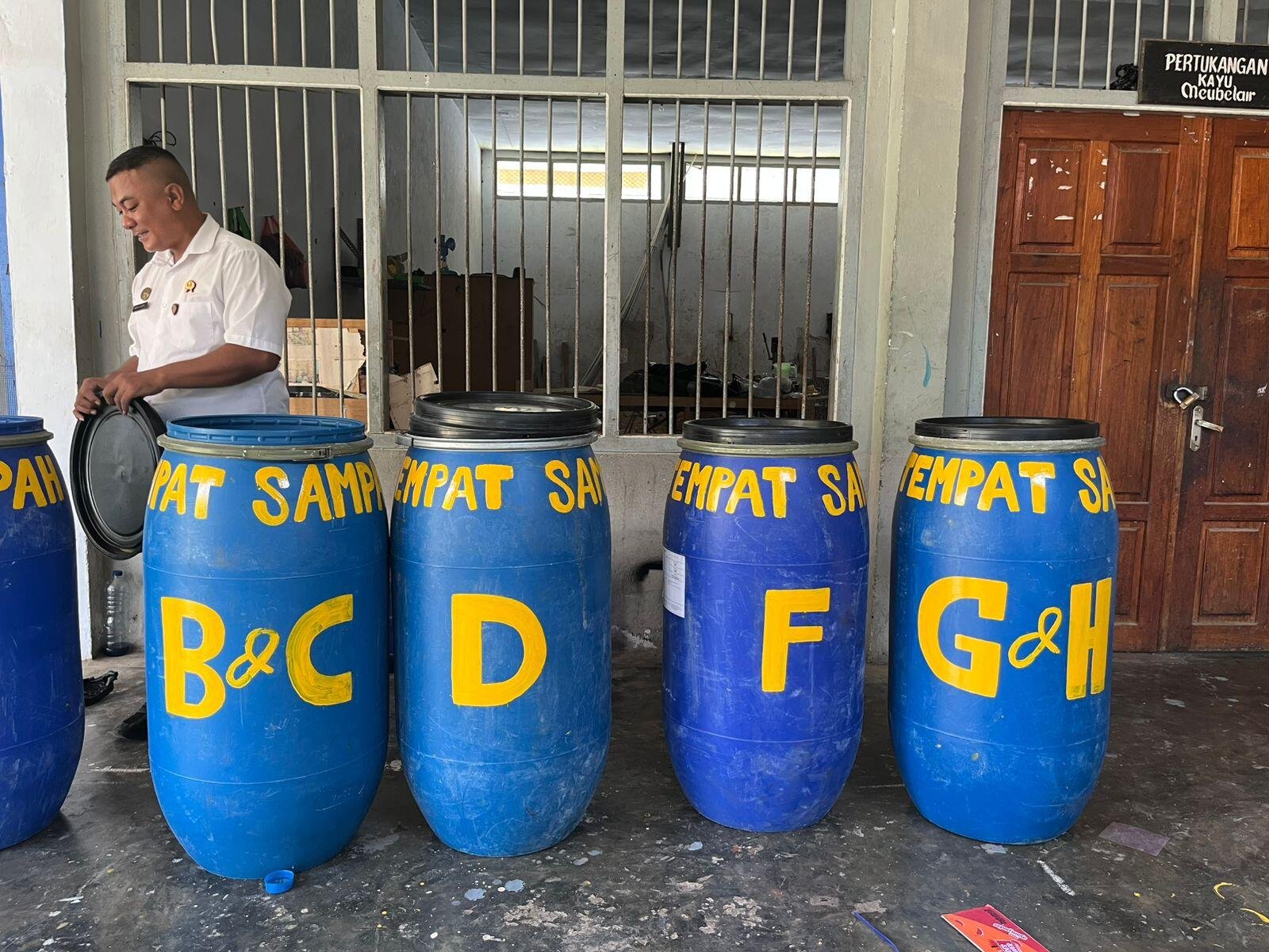Ternate – Dalam upaya menjaga kebersihan dan kenyamanan lingkungan, Lembaga Pemasyarakatan (Lapas) Kelas IIA Ternate menyediakan tempat sampah di setiap blok hunian warga binaan. Tempat sampah tersebut dibuat dari drum bekas yang dimodifikasi, sebagai bentuk pemanfaatan barang tidak terpakai menjadi sarana pendukung kebersihan.