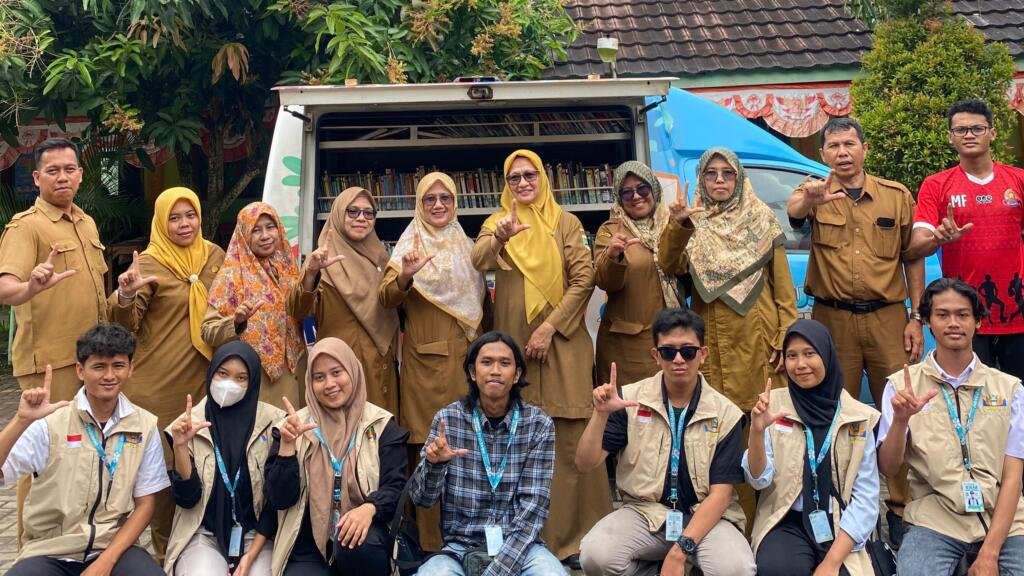 Keterlibatan mahasiswa KKM menjadi warna tersendiri dalam kegiatan Perpustakaan Keliling ini. Selain mendampingi, mereka juga berperan dalam mendokumentasikan kegiatan, mengatur jalannya aktivitas, dan memastikan seluruh siswa mendapatkan kesempatan membaca secara bergantian. Semangat kebersamaan antara pihak sekolah, mahasiswa, dan tim perpustakaan daerah membuat acara berjalan tertib dan penuh keceriaan.