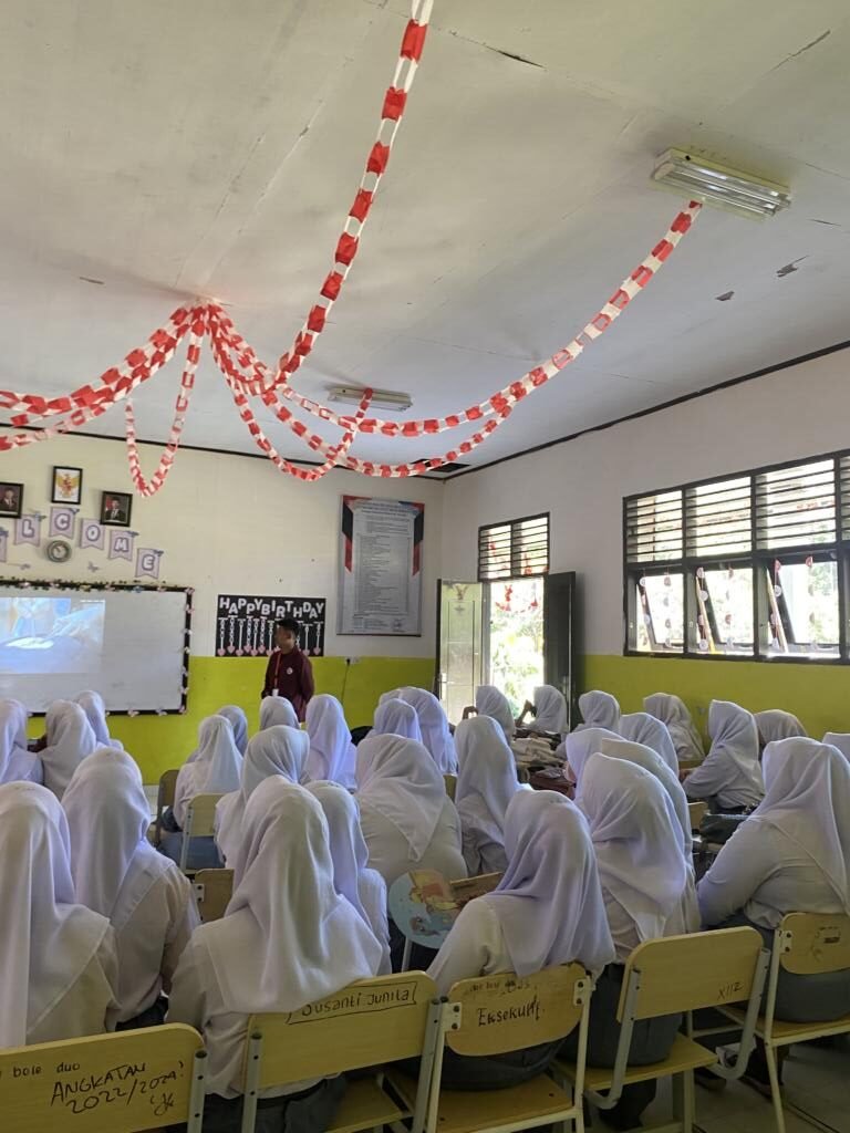 Selanjutnya, Bening dari Fakultas Kebidanan Abdurrab menyampaikan materi mengenai Pencegahan LGBTQ. Dengan bahasa yang sederhana dan mudah dipahami, ia mengajak siswa untuk lebih memahami pentingnya menjaga moral, kesehatan mental, serta menjauhi perilaku menyimpang yang dapat merugikan masa depan generasi muda.