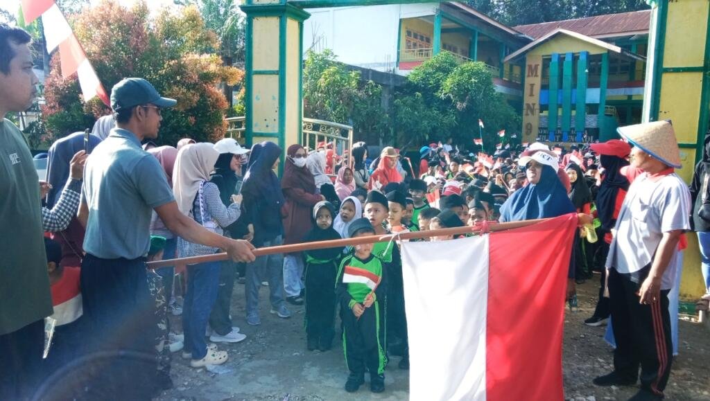 Kegiatan jalan santai di lepas secara resmi oleh Kepala MIN 9 Langkat Sopian, S. Pd. I., M. Sos di halaman Madrasah. Kemudian diikuti dengan penuh semangat oleh majelis guru, staf tata usaha, orang tua siswa serta seluruh siswa-siswi. Mereka tampak antusias berjalan bersama sambil mengenakan atribut bernuansa merah putih sebagai simbol cinta tanah air. Suasana semakin meriah dengan semangat nasionalisme yang terpancar dari peserta sepanjang rute perjalanan.