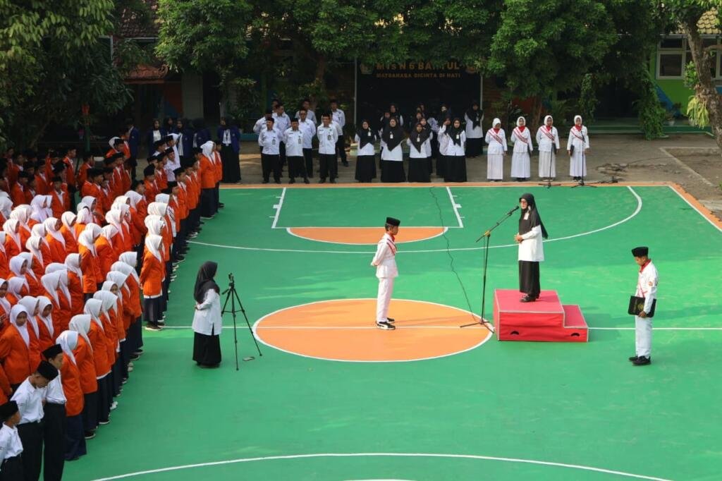 Bantul (MTsN 6 Bantul) – MTsN 6 Bantul menggelar upacara bendera pada Senin (11/8/ 2025) dengan Dian Budi Astuti sebagai pembina upacara. Dalam amanatnya, Dian Budi Astuti mengangkat tema Menyambut Hari Ulang Tahun ke-80 Republik Indonesia, mengajak seluruh siswa dan guru untuk menumbuhkan rasa cinta tanah air melalui disiplin, semangat belajar, dan kontribusi positif di lingkungan madrasah. Ia juga menekankan pentingnya menghargai perjuangan para pahlawan dengan mengisi kemerdekaan melalui prestasi.