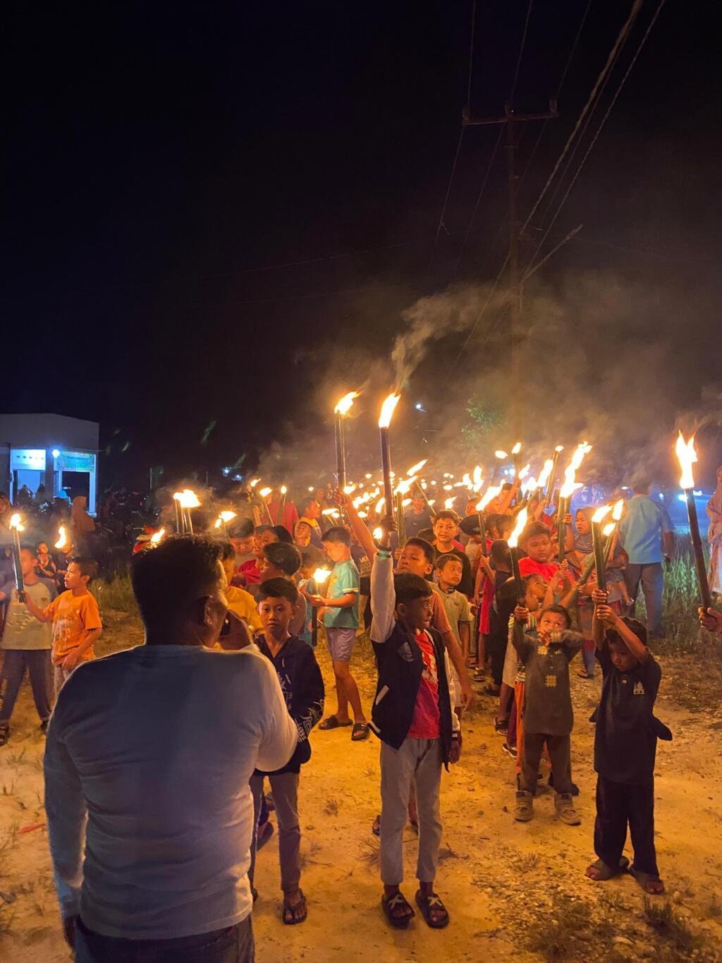 Semarak Pawai Obor Sambut HUT ke-80 RI di Desa Mandi Angin