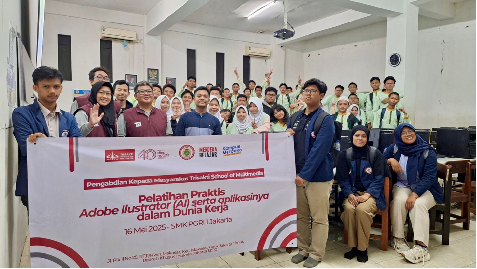 Jakarta, 16 Mei 2025 — Trisakti School of Multimedia kembali menunjukkan komitmennya dalam mendukung dunia pendidikan melalui kegiatan Pengabdian kepada Masyarakat (PKM) yang dilaksanakan di SMK PGRI 1 Jakarta. Kegiatan ini diikuti oleh siswa dan siswi SMK PGRI 1 Jakarta dari jurusan Desain Komunikasi Visual (DKV) untuk terlibat sebagai audiens yang berlangsung pada hari Jumat, 16 Mei 2025, pukul 07.30 hingga 15.00 WIB.