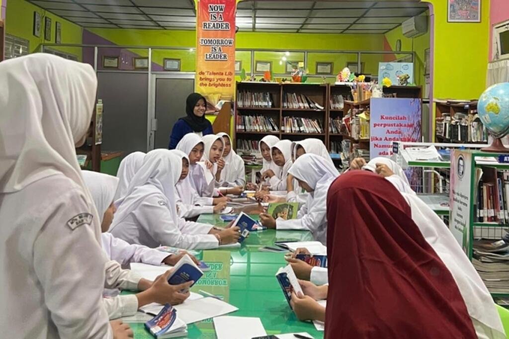 Bantul (MTsN 6 Bantul) – Ada yang berbeda setiap Selasa pagi di MTsN 6 Bantul. Saat siswa lain baru bersiap memulai pelajaran, sekitar 25-30 siswa telah berkumpul di Perpustakaan de’ Talenta Lib untuk mengikuti ekstrakurikuler (ekskul) English Club. Kegiatan ini menjadi satu-satunya ekskul di madrasah tersebut yang dilaksanakan pada pagi hari, tepatnya pukul 06.00 hingga 07.00 WIB.